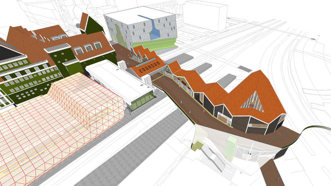 De spooroverbouwing is het sluitstuk van de Buiging in Inverdan en verbindt de centrumzijde via een fiets- en voetgangersroute met de westzijde van Zaandam. Aan de overbouwing komt de nieuwe stationsentree, circa 540 m² voor commerciële voorzieningen en circa 125 m² voor een horecagelegenheid. Het station wordt aangepast aan de nieuwe situatie en voorzien van toegangspoortjes.